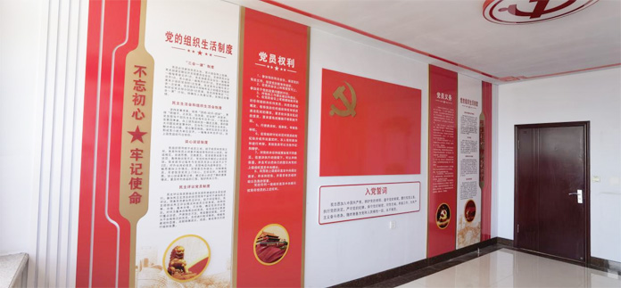 黨員活動室布局以黨旗和入黨誓詞為中心,以黨旗紅為主色調(diào)。墻上布置有黨員權(quán)利、黨員義務(wù)、黨的組織生活制度、黨建引領(lǐng)、黨員風采、黨支部組織架構(gòu)等專題板塊,全方位為黨支部開展活動創(chuàng)造條件,營造濃厚黨建活動氛圍,提升黨員認同感和歸屬感,成為集團公司開展黨建工作、加強黨性教育、提高黨員素質(zhì)的重要活動場所。